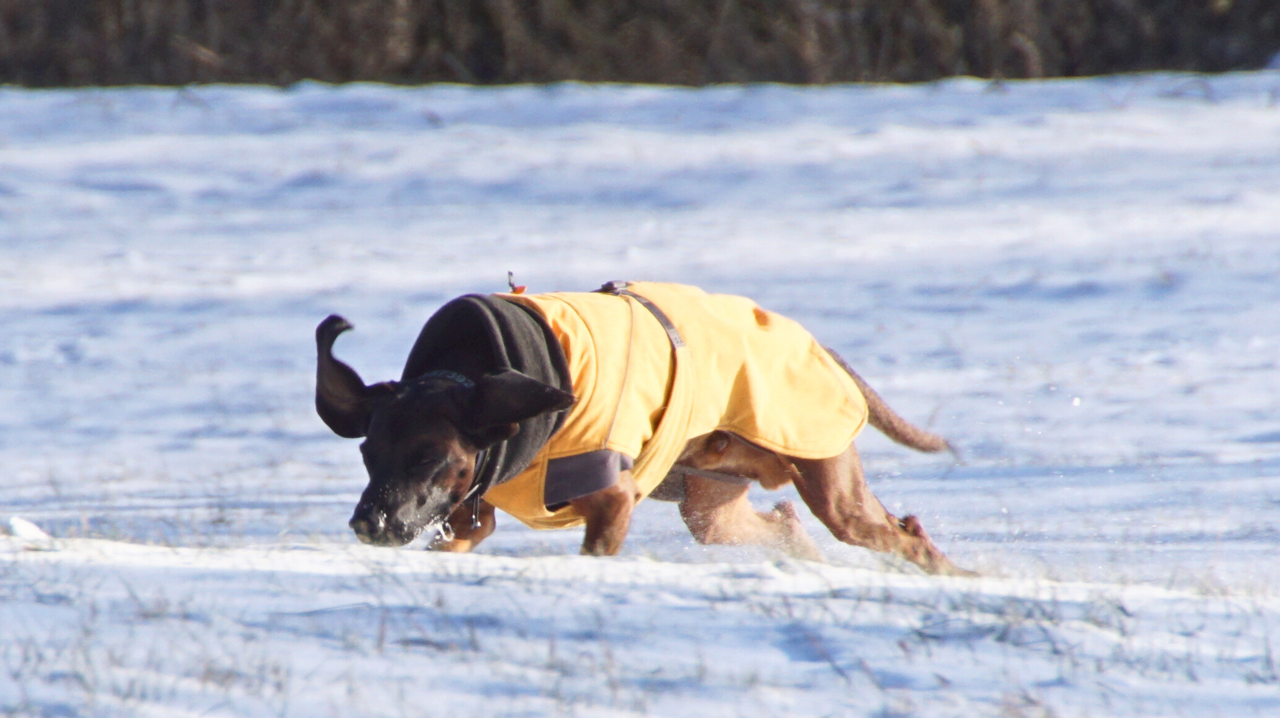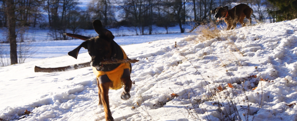 Auch Schneebälle, die manche Hunde gern fangen und fressen, enthalten alles, was sich im Schnee (Strassenränder) so ablagert. Ab und an auf Wiesen oder im Wald macht ein solches Spielchen aber dennoch riesig Spaß.*Streusalz, Enteiser